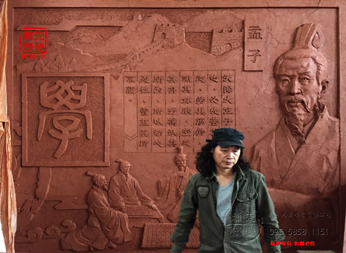 學校文化墻孟子浮雕南京板橋中學浮雕玻璃鋼材質
